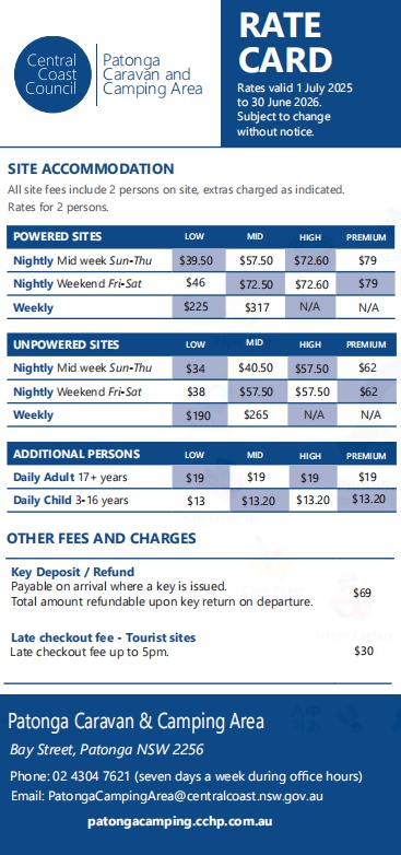 Home Rates Site Map Gallery Bookings, Contact & Location Our Rates Download Or Print Rates Card PATONGA CAMPING GROUND – BOOK NOW